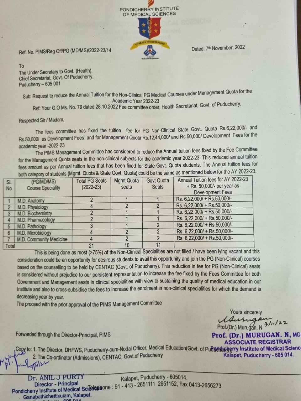 | Selection Criteria | 50% in English, Physics, Chemistry and Biology and 40% for SC, ST, OBC |